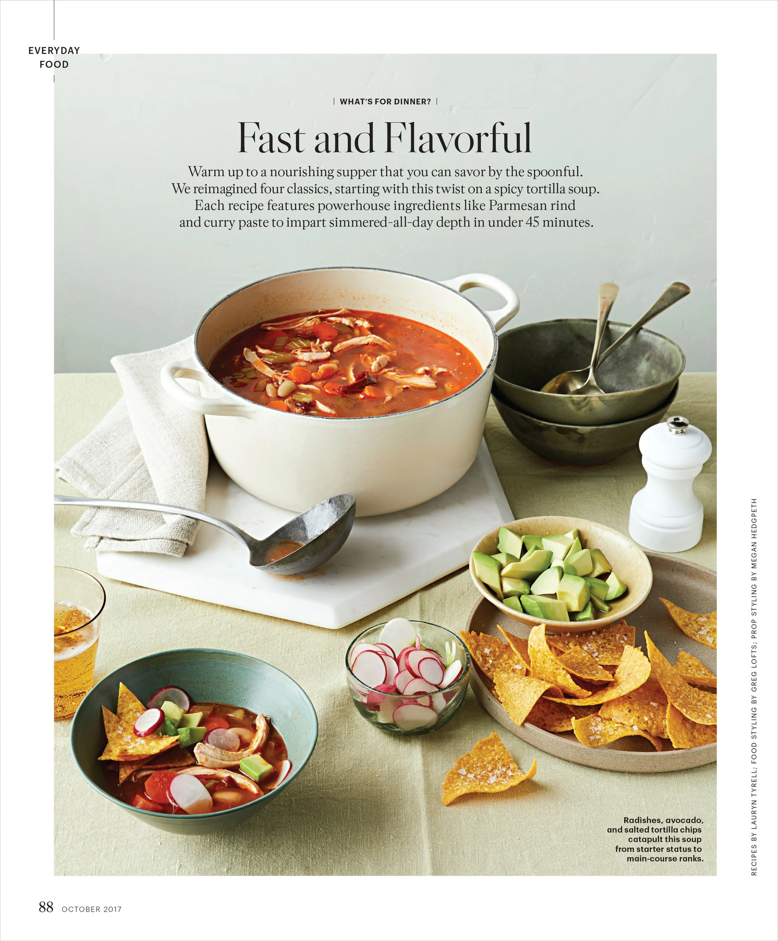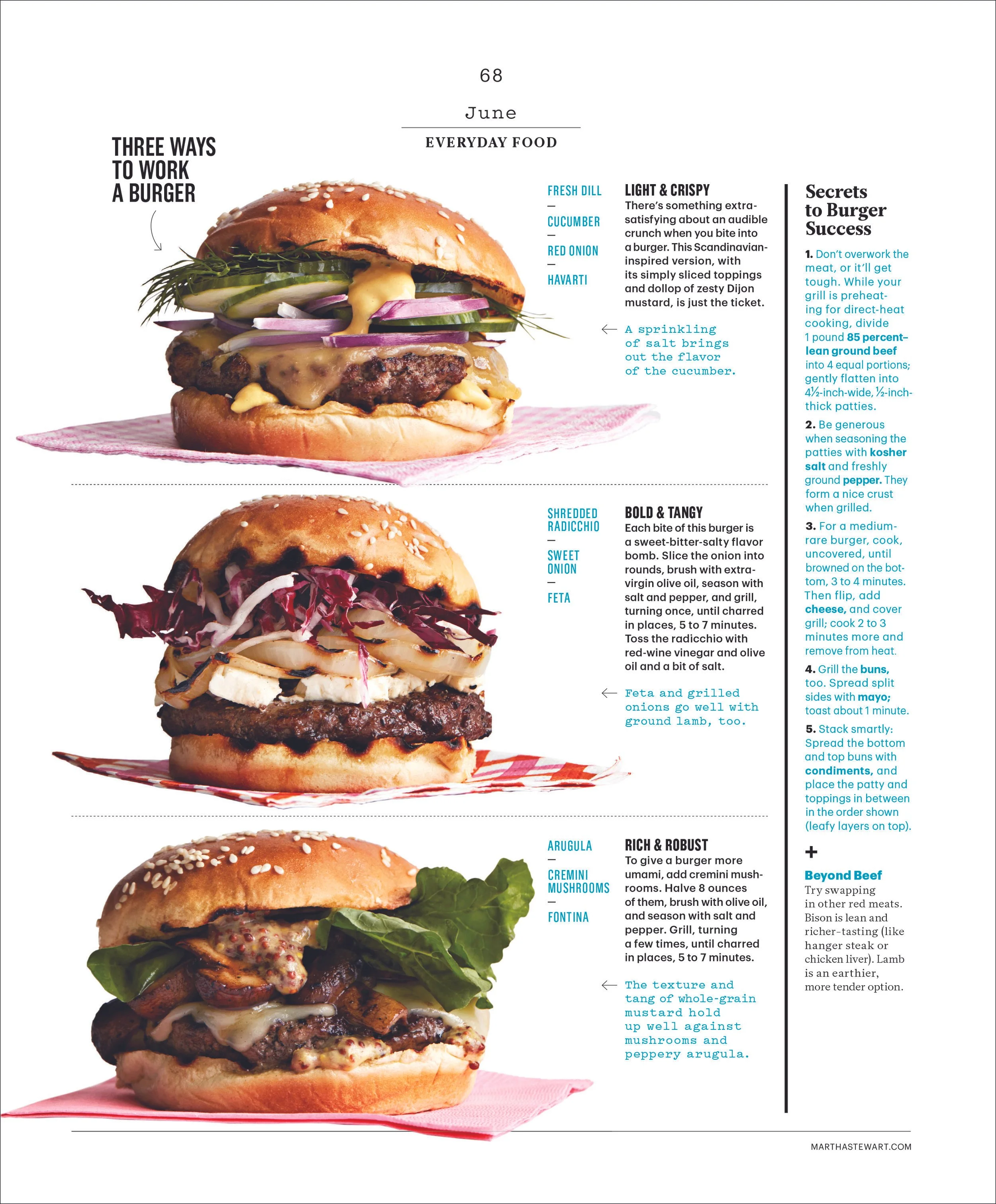 Art directed “Everyday Food” section for Martha Stewart Living. Each month featured new seasonal recipes and useful tips and tricks for any home chef. To differentiate the section from month to month, I created a different color palette that complemented the season and the food.